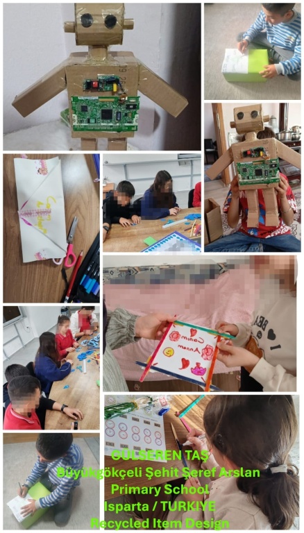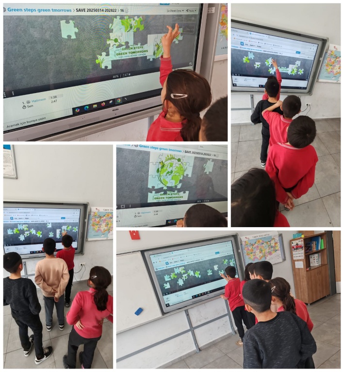 “Green Steps, Green Tomorrows” projemiz, 7-11 yaş arası öğrencilere çevre bilinci kazandırmak, onları geri dönüşüm konusunda bilinçli bireyler olarak yetiştirmek amacıyla hazırlanmış uluslararası bir eTwinning projesidir. Projemiz kapsamında öğrenciler doğa yürüyüşleri yaparak çevre temizliği gerçekleştirmiş, geri dönüşüm ayrıştırması yaparak uygulamalı öğrenme yaşamışlardır. Doğal boyalarla sanat çalışmaları, interaktif akıllı tahta etkinlikleri, web2 araçlarıyla etkinlikler ve çeşitli sanatsal uygulamalarla süreci hem eğlenceli hem de öğretici hale getirdik. 5 farklı ülkeden 17 öğretmenin katıldığı projemizde İngilizce bir akrostiş şiir hazırlanıp video haline getirilmiş, tüm çalışmaların yer aldığı bir e-müze ile proje tamamlanmıştır. Bu proje ile çevreye duyarlı, bilinçli bireyler yetiştirmeyi hedefledik.